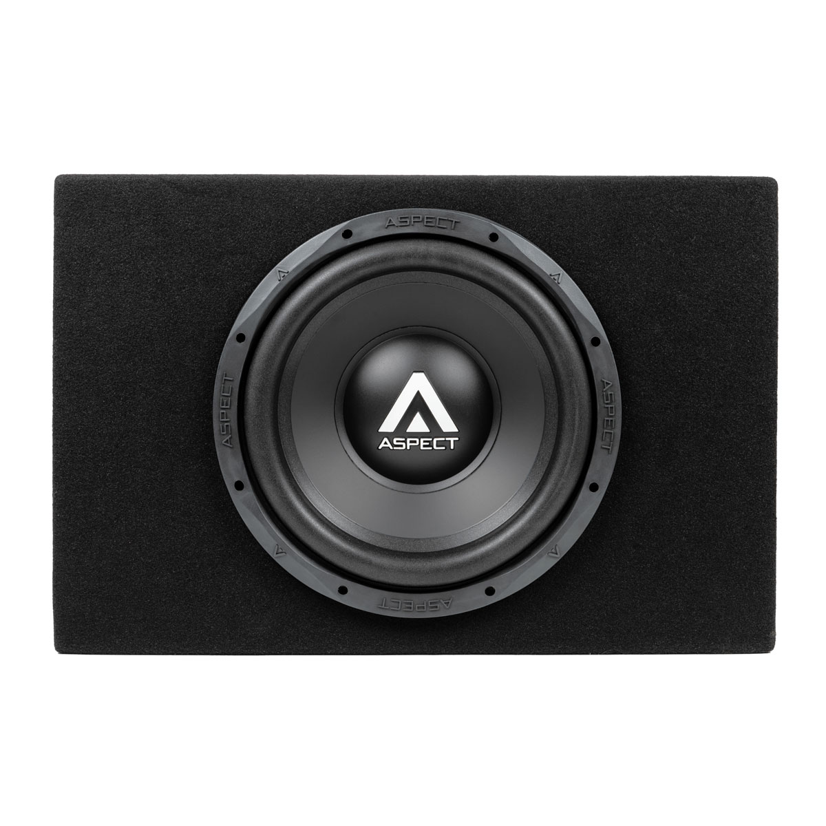 Отделка качественным карпетом темно-серого цвета, с вышивкой фирменного логотипа Aspect на верхней панели.