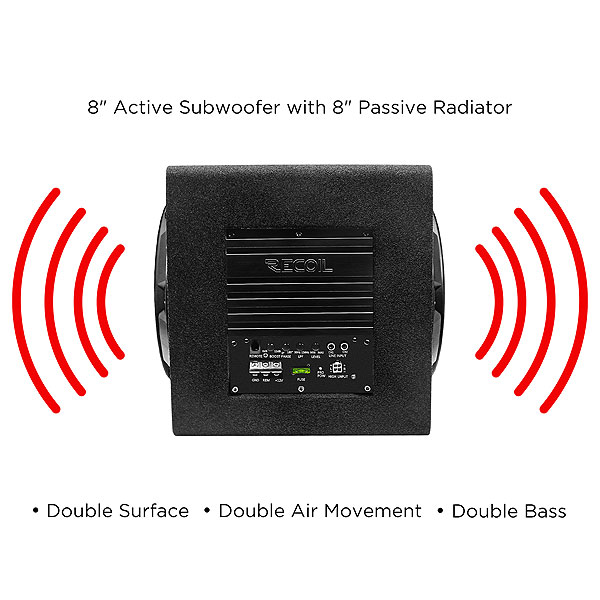 ✔️Дополнительный пассивный излучатель: это тот же 8-дюймовый динамик, у которого удалена катушка с магнитом, это делает сабвуфер эффективным наравне с ФИ корпусом, но без недостатков ФИ:- большой объем и призвуки.
