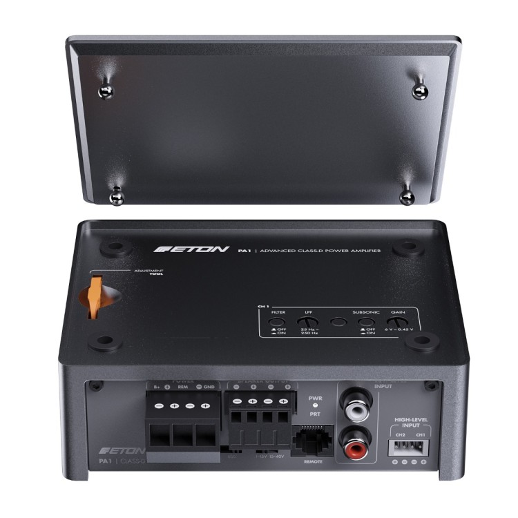 Сверхкомпактный цифровой моно-усилитель Eton PA1 . Модель 2025 года. Возможность установки ярусами (друг на друга) вместе с усилителями Eton PA1 и Eton PA4. Возможность подключения по высокому уровню до 40 Вольт. Subsonic 30 Гц.