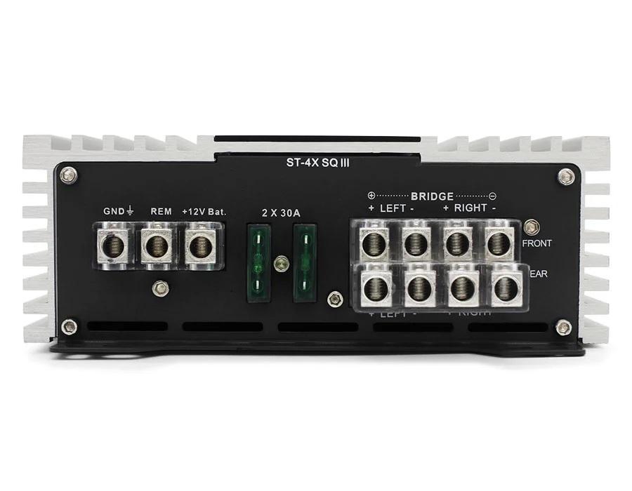 Серия усилителей ST-X SQ III – третье поколение компактных усилителей серии ST-X SQ, которое позволит получить высококачественный звук в вашем автомобиле. Новое поколение построено на улучшенной элементной базе и имеет новый корпус, с еще более оптимизированным тепловым режимом Можете быть уверены в качестве звучания! За счет небольших размеров корпуса, не составит никакой сложности разместить эти усилители в любом автомобиле, а применение высококачественных RCA разъемов и операционных усилителей, позволит получить качественный звук для вашей аудиосистемы. Мощность, цена, размер и качество звучания – вот что означает серия ST-X SQ III.
