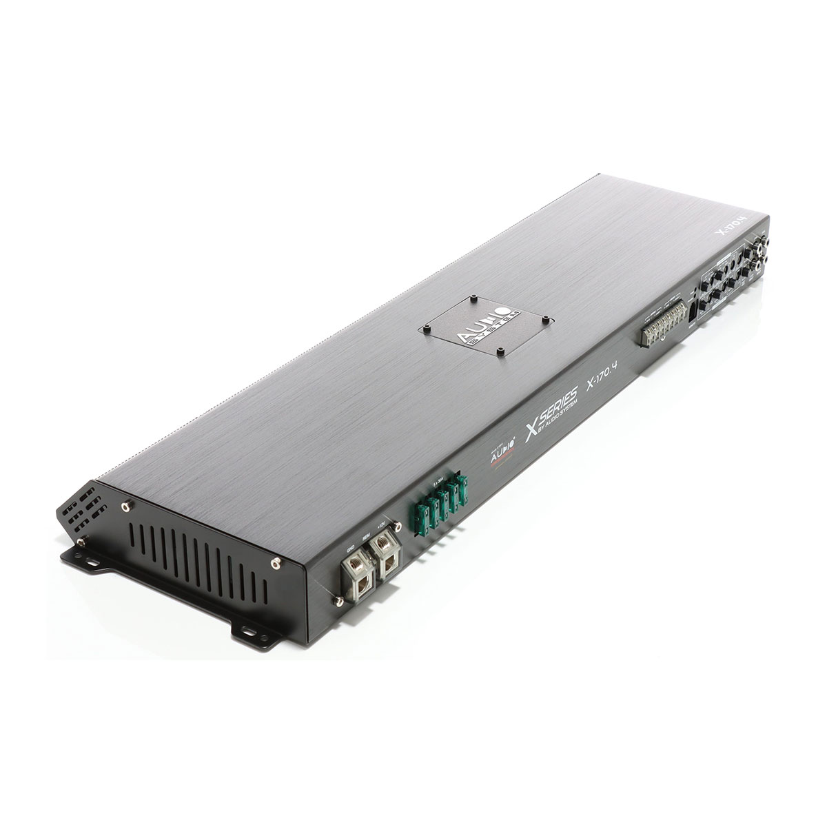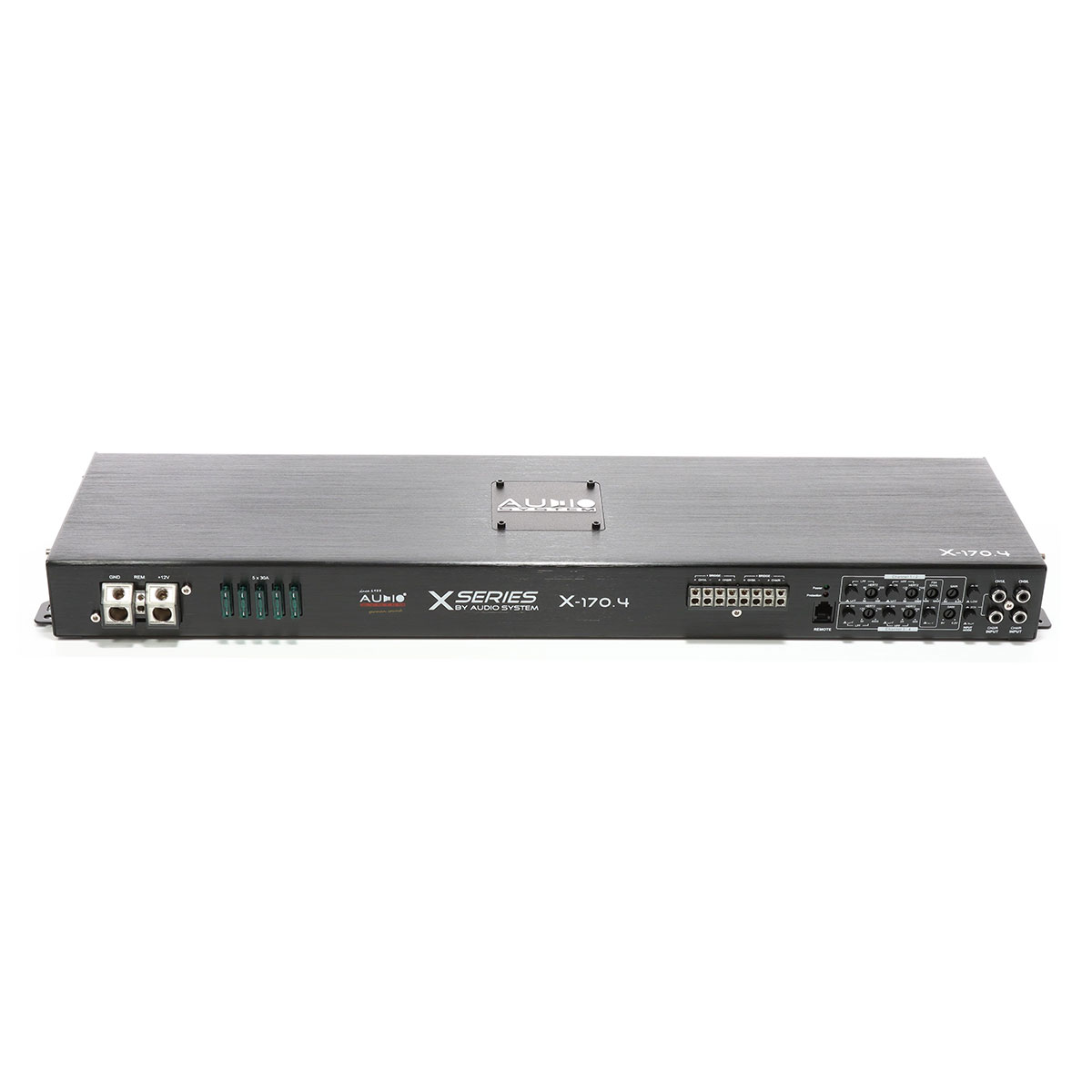 X-170.4 4-х канальный усилитель A/B класса, с проверенной годами схемотехникой. Несмотря на огромный мощностной потенциал и крупные размеры, усилитель спроектирован для систем уровня SQ. Уникальная возможность работы на нагрузку 1 Ом в стереорежиме и на нагрузку 2 Ом в два моста. Для эффективного отвода тепла, предусмотрены вентиляторы, активирующиеся по температуре. Компоновка органов коммутации и управления, расположены на одной стороне. Усилитель рассчитан на классическую конфигурацию фронтальные АС + сабвуфер. Для такого случая, 3–4 сабвуферные каналы, рассчитаны на работу с проводным регулятором уровня сигнала RTC. В каждой паре каналов, помимо широких диапазонов ФНЧ/ФВЧ, можно организовать полосовой фильтр, для точной частотной настройки динамиков. Силовой запас мощности, подразумевает работу на поканальное усиление четырех мощных мидвуферов, либо два сабвуфера, в режиме двух мостов. При использовании усилителя в процессорной системе, есть возможность отключения фильтров.